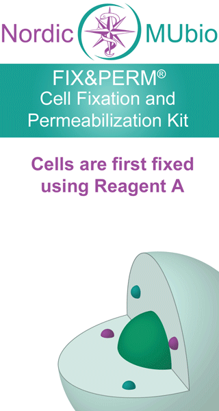 FIX&PERM is a simple procedure making use of two reagents. Reagent A gently fixes cells, while Reagent B permeabilizes them. The specific formulations reduce background and allow simultaneous addition of permeabilization medium and fluorochrome labelled antibodies, allowing staining of intracellular structures such as cytoplasmic or nuclear enzymes, oncoproteins, cytokines, immunoglobulin’s, etc.